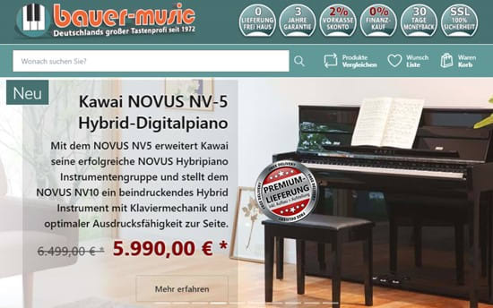 BAUER-MUSIC unter dem Namen ORGEL-BAUER im Jahr 1972 gegründet - gehört zu Deutschlands führenden Fachgeschäften für elektronische Tasteninstrumente.